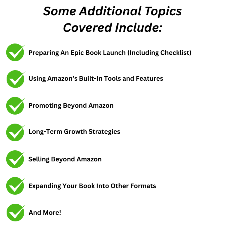 With 8 additional lessons, you'll get advance tactics to help your book business grow even faster. Lessons like how to stay relevant in your niche, staying connected to your readers and more. These advanced techniques can help your business and profits grow, exponentially, with each book published.